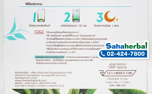 วิธีใช้ : รับประทานครั้งละ 1 ซอง ก่อนนอน