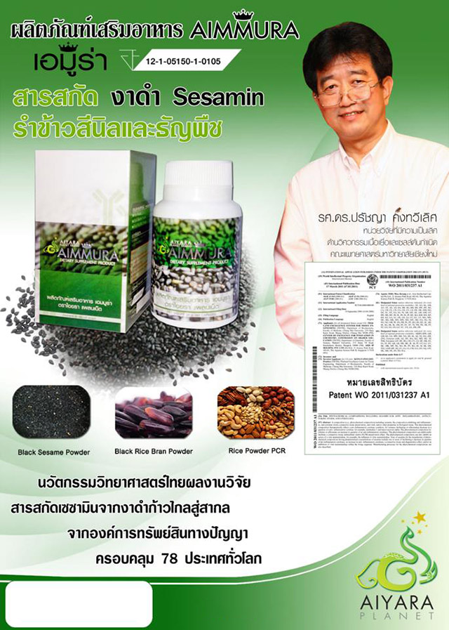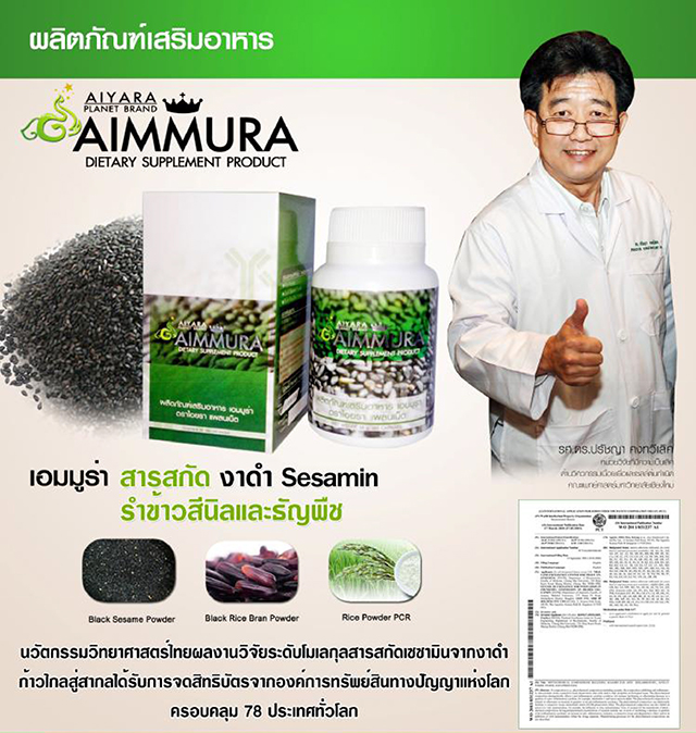 Aimmura Sesamin เอมมูร่า เซซามิน สารสกัดงาดำ รศ.ดร.ปรัชญา คงทวีเลิศ ได้ทำการวิจัยเกี่ยวกับสารสกัดงาดำ “เซซามิน” กล่าวว่าเรามีองค์ความรู้เกี่ยวกับการใช้ประโยชน์จากงามากว่า 4,000 ปีแล้วการทำวิจัยเรื่องนี้ก็เพราะอยากใช้องค์ความรู้วิทยาศาสตร์มาพิสูจน์องค์ความรู้ตั้งแต่โบราณ เมื่อทำวิจัยก็พบว่าสิ่งที่คนโบราณมีความเชื่อนั้นเป็นเรื่องจริง