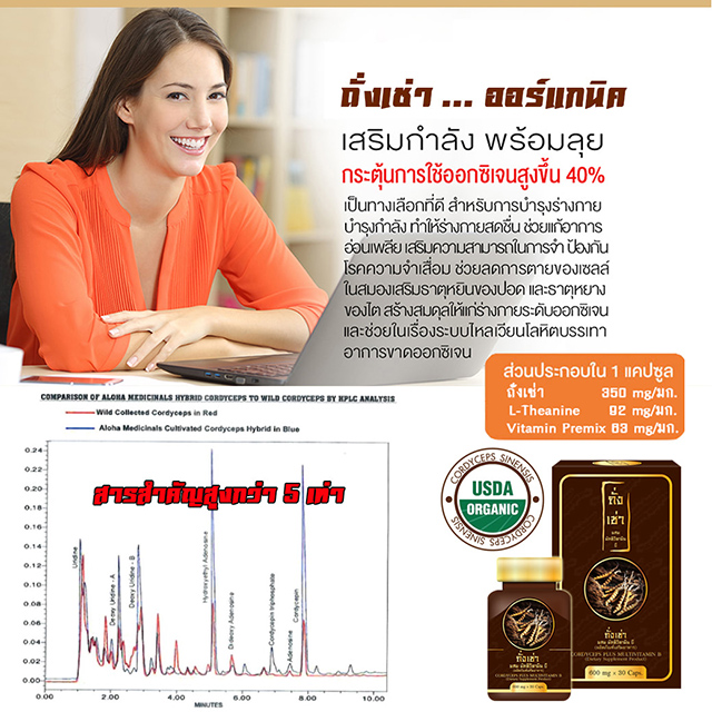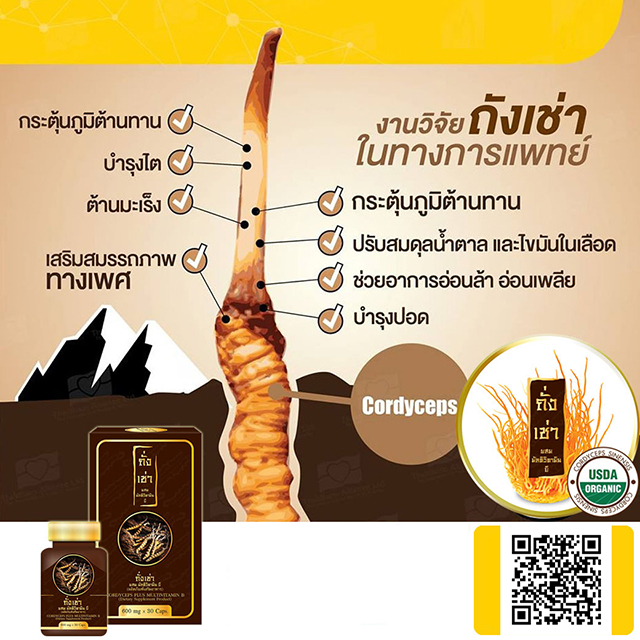 • สารสำคัญ สูงกว่า 5 เท่า เทียบกับถั่งเช่าป่า