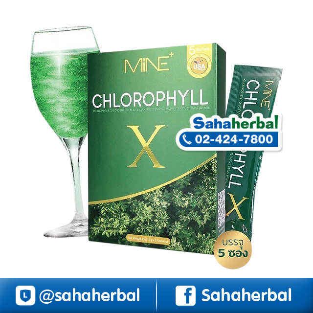 MiNE Chlorophyll X มายน์ คลอโรฟิลล์ เอ็กซ์ คลอโรฟิลล์มายมิ้น : สหเฮอร์เบิ้ลขอแนะนำ หัวเชื้อ คลอโรฟิลล์ เข้มข้น สารสกัดนำเข้าจาก USA ใครไม่ชอบทานผักแนะนำเลย 1 ซอง เท่ากับ ผัก 12 กิโล ดื่มง่าย ไม่เหม็นเขียว ช่วยขับล้างสารพิษต่างๆ ในร่างกาย เสริมภูมิคุ้มกัน บำรุงผิวพรรณ ให้สวยใสดูผิวแลชุ่มชื่น