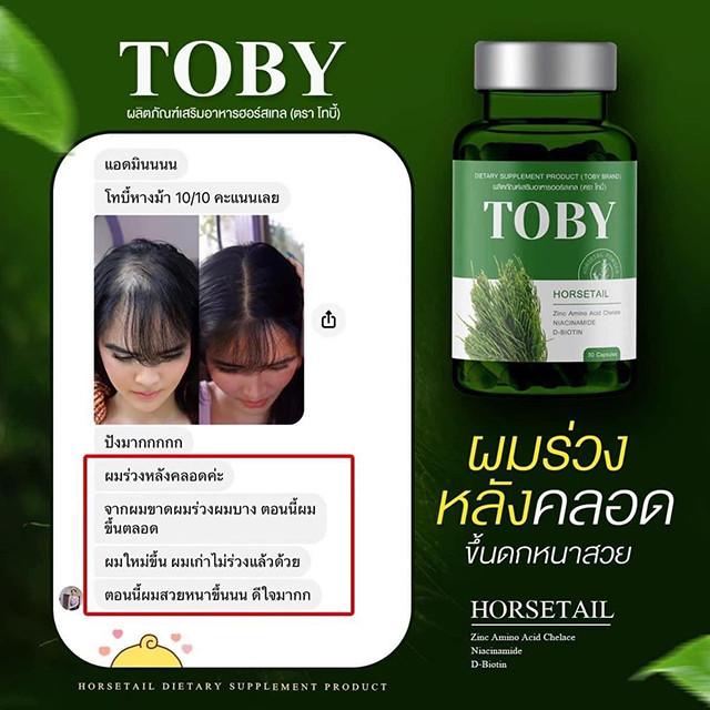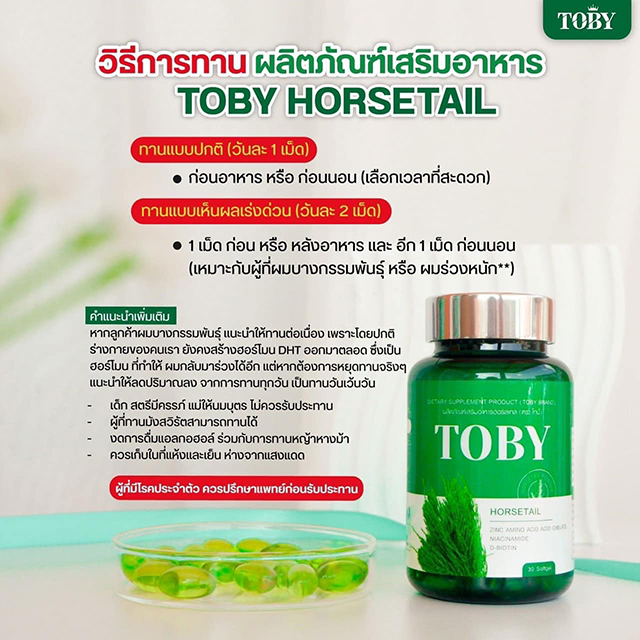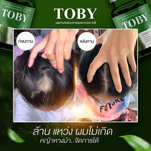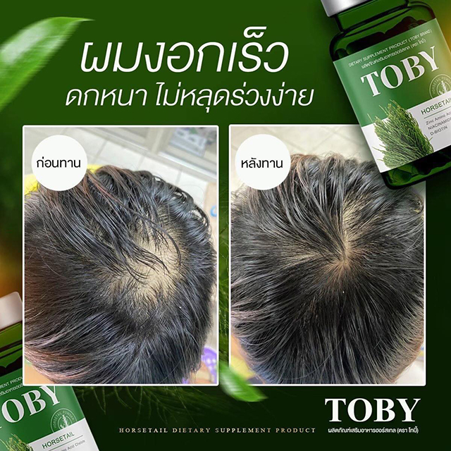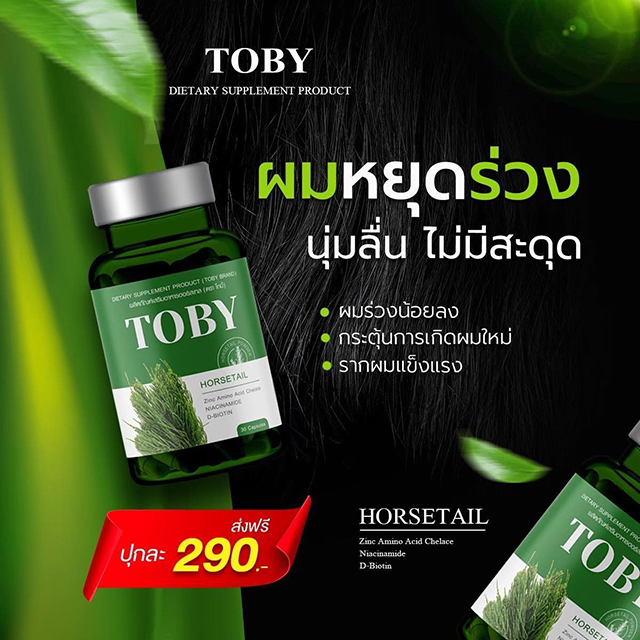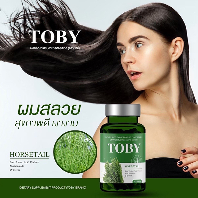 Toby Horsetail โทบี้ วิตามินบำรุงผม หญ้าหางม้า ราคาถูก ฟรีของแถมทุกรายการ แก้ผมร่วง แก้หงอก วิตามินแก้ผมร่วง ผมบาง หัวล้าน